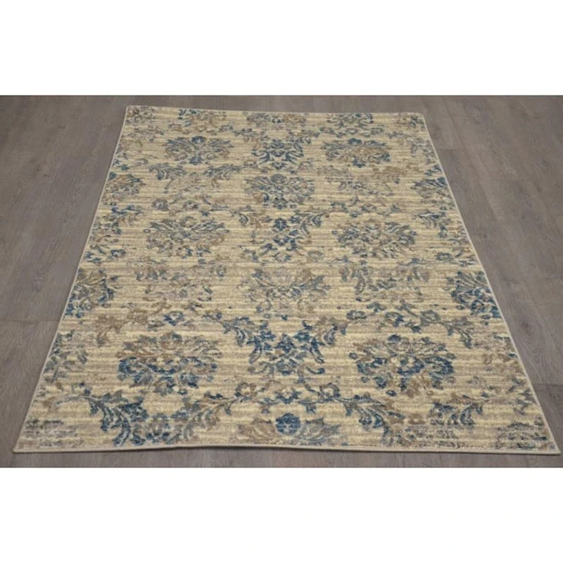 This blue and ivory floral design 2x6ft. runner area rug offers a classic yet contemporary look with an elevated neutral color palette. Constructed of synthetic fiber, this affordable design provides a low pile that feels incredible underfoot and looks timeless in any room.