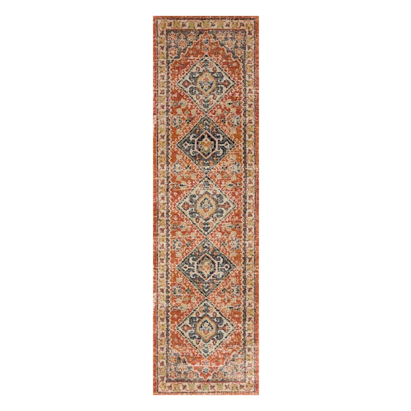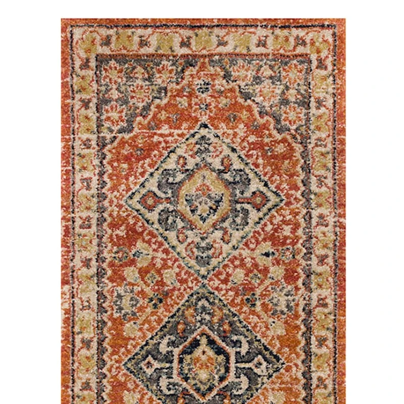 Our Dayton area rug showcases traditional inspired design that exemplifies elegance, comfort and sophistication. Five center diamonds surrounded by intricate border detail create the beauty of this wonderful rug. Featuring rich shades of rust, red, gold, grey and tan. The meticulously woven synthetic construction of this low-pile rug boasts durability and will provide years of enjoyment in your living space. Available in 3x5ft., 5x7ft. and 8x10ft. sizes and a 2x7ft. runner.