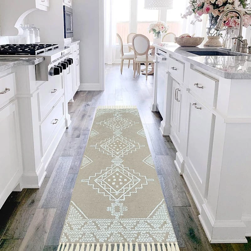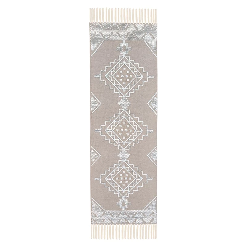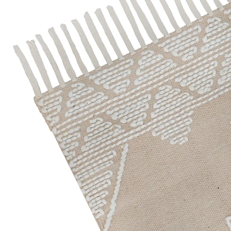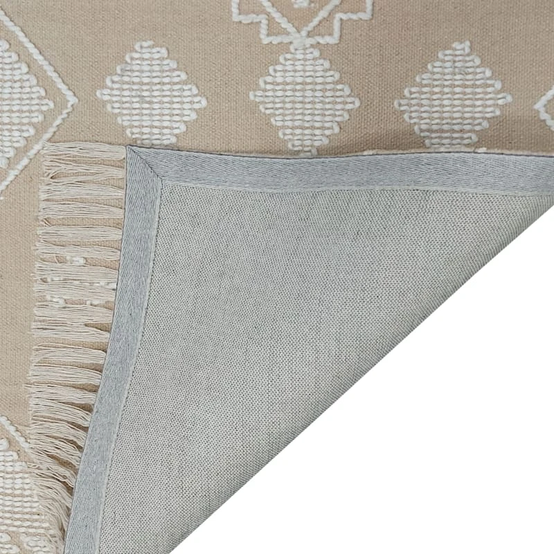 Found & Fable is a new collection that lets you explore what’s right around the corner. Choose your own adventure every day. Savor it all and say yes to what comes next—exclusively At Home. Ready to make its mark in the entryway or a statement under the kitchen table or coffee table, our Goa tan medallion global-style cotton area rug is an ideal anchor for any adventurer’s living space. The rustic medallion pattern in tan and white adds to the overall personality of this versatile fringed rug. Available in 3x5ft., 5x7ft. and 7x10ft. sizes and a 2x6ft. runner.