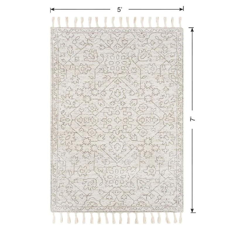 Be the first to review “(B719) Elsa Cream Flatweave Fringe Area Rug, 5×7” Cancel reply