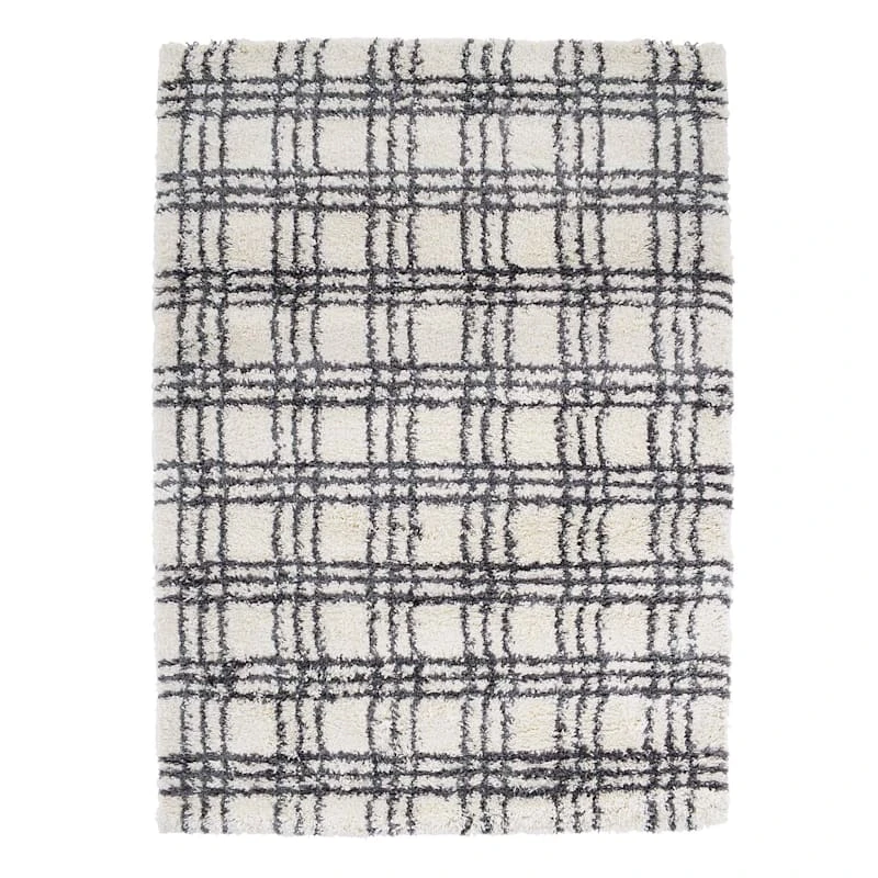 Modern farmhouse meets At Home prices in Honeybloom, our exclusive new brand that celebrates life lived together. Our cozy dark grey and ivory plaid shag area rug is ideal for traditional and modern settings, and it helps with noise levels and keeps bare floors nice and comfy. The plush synthetic pile offers a super-soft feel and will be a treat for your toes. This rug will be comfortable in a contemporary loft or right at home in a modern farmhouse. Available in 5x7ft. and 8x10ft. sizes.