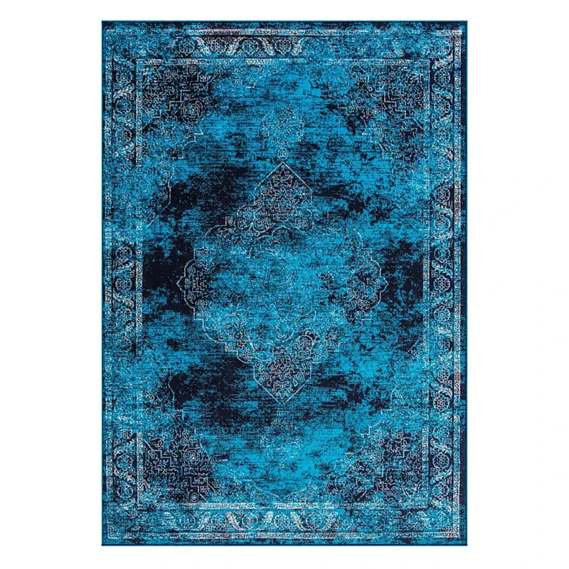 Add a bit of traditional elegance to your living room with our beautiful Antika medallion rug. The intricate design looks like a tapestry and is classy yet unique. Its gorgeous color combination of navy blue, turquoise and white will look fabulous atop a neutral carpet or a dark hardwood floor. And the large size is perfect for fitting underneath a dining table or coffee table. This rug is regal yet approachable and will easily become the centerpiece of your room. So let your mind wander and go for a magic carpet ride! Available in 5x7ft. and 7x9ft. sizes.