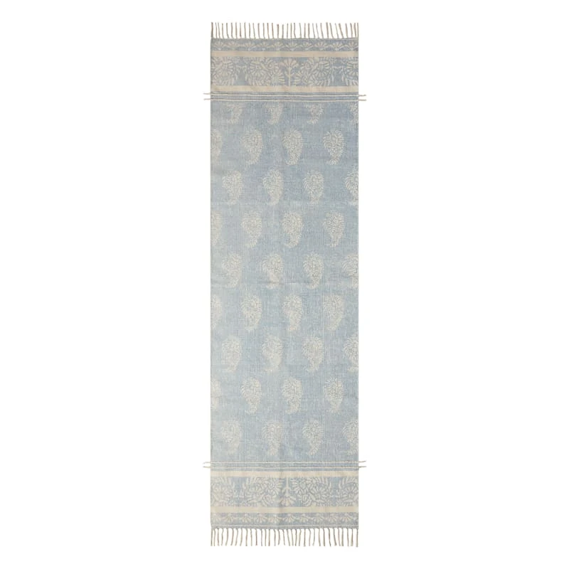 Modern farmhouse meets At Home prices in Honeybloom, our exclusive new brand that celebrates life lived together. Looks and artistry aside, area rugs help absorb and muffle noise as they soften the step of hard flooring. Our Honeybloom blue and ivory paisley rug is constructed of cotton and designed to stand up to any and all traffic and wear. With a surprising printed twist, this fringed area rug offers a cozy and inviting feel to your toes with the added benefit of being easy to care for. Available in 3x5ft. and 5x7ft. sizes and a 2x7ft. runner.