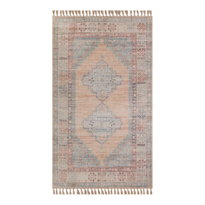 Modern farmhouse meets At Home prices in Honeybloom, our exclusive new brand that celebrates life lived together. Looks and artistry aside, area rugs help absorb and muffle noise as they soften the step of hard flooring. Our Honeybloom multicolor medallion rug is constructed of polyester and designed to stand up to any and all traffic and wear. With a charming weathered medallion print, this fringed area rug offers a cozy and inviting feel to your toes with the added benefit of being easy to care for. Available in 3x5ft., 5x7ft. and 8x10ft. sizes and a 2x7ft. runner.