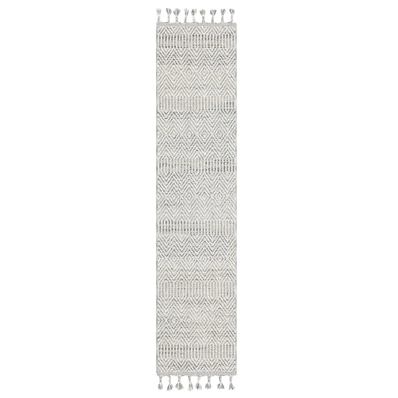 Found & Fable is a new collection that lets you explore what’s right around the corner. Choose your own adventure every day. Savor it all and say yes to what comes next—exclusively At Home. Lay the neutral, calming groundwork with our Soho grey tasseled runner rug that’s soft to the touch and just as alluring with a textured landscape. This neutral rug is the perfect accent in an elegant bedroom or a calming aesthetic in a family room. A simple colorway offers a contemporary yet soft complement to the global-inspired pattern details. Available in 3x5ft., 5x7ft. and 8x10ft. sizes and a 2x6ft. runner.