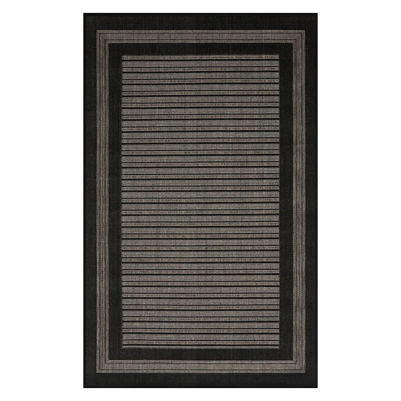 A collection that lets everyone relax in style. Polished finishes and classic hues pair with fun finds. Providence is where elegant settings still feel comfortable and warm—exclusively At Home. In addition to providing an effortless update to your existing decor, an accent rug helps absorb and decrease noise as they soften the step of hard flooring. Our 3x5ft. Carlo black and grey border accent rug is perfectly at home in farmhouse, coastal or traditional situations. Also available in 5x8ft. and 8x10ft. sizes.