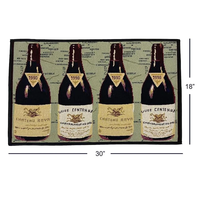Our Hampton 18x30in. wine kitchen mat lets you express your style as you welcome friends and family in for special occasions. With a wine bottle and map motif, this handy green, brown and tan multi polyester and cotton kitchen rug coordinates with all your decor and softens the step as well.