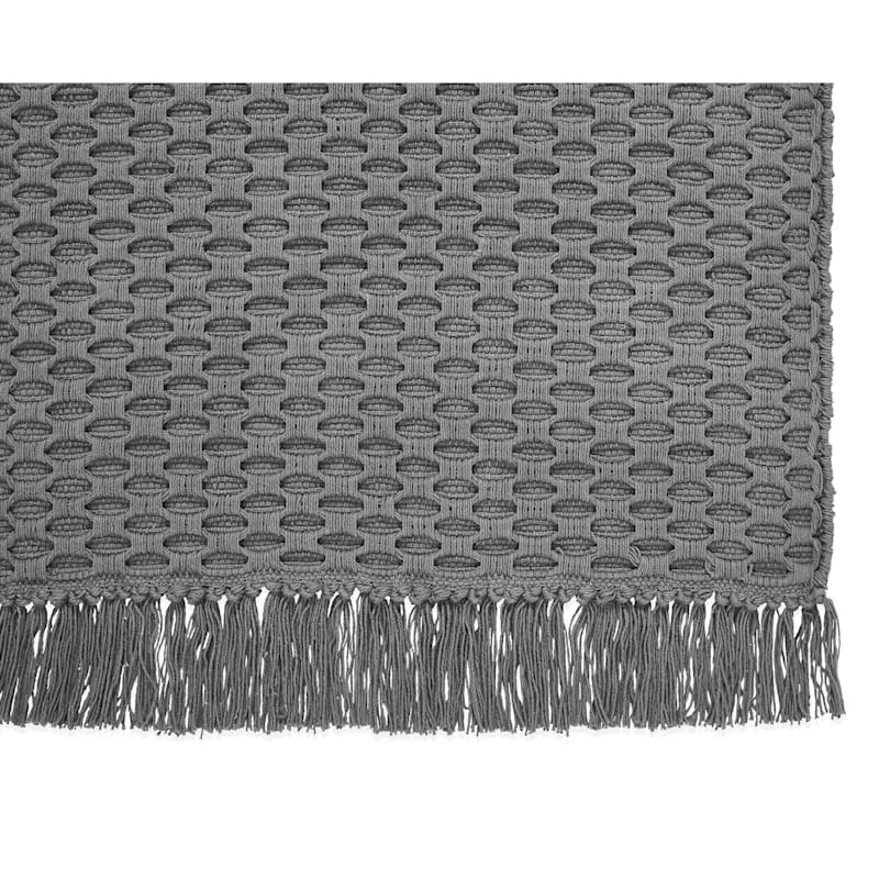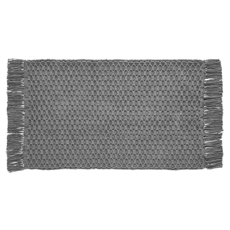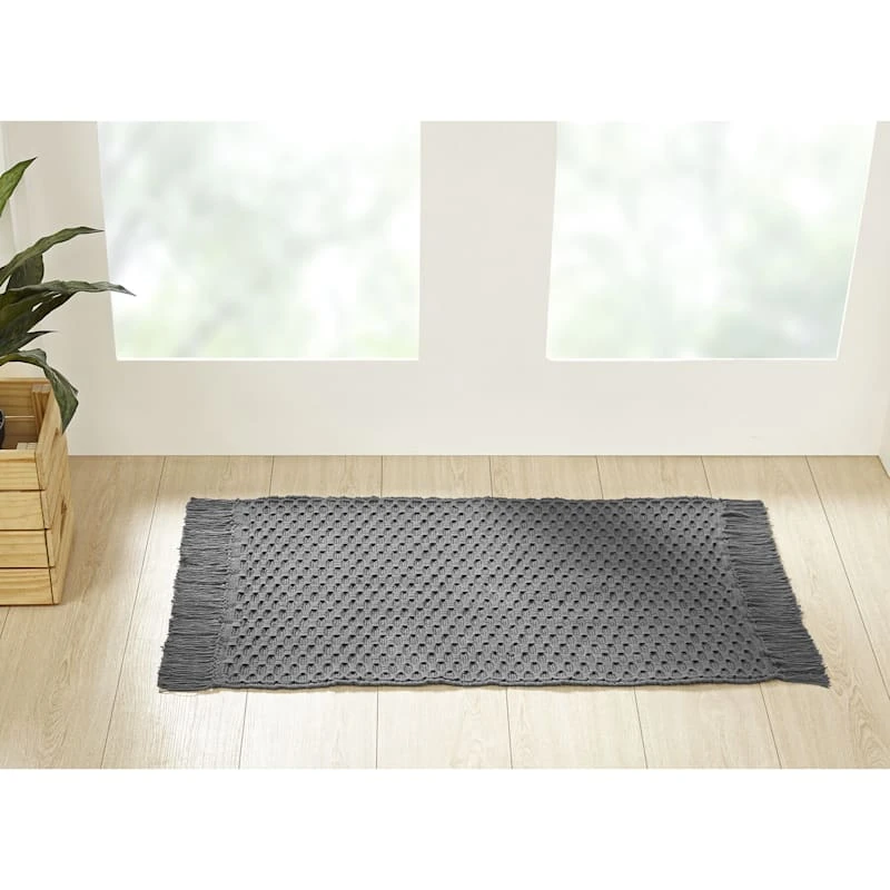 Our Margot solid grey waffle knit woven accent rug has a soft chunky texture and can spice up any entryway or living area. The convenient 20x34in. knit cotton rug is perfect for placing wherever a softer step is needed.