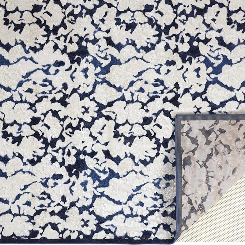 Presenting whimsical designs with intense color hues of ivory, ink, and deep blue the Meera Abstract Floral Rug Collection refreshes its surrounding decor. Machine made with polyester and polypropylene this collection’s high-low pile reinvents depth and dimension that easily shines in a wide variety of interior spaces. This rug collection is fade and stain resistant and pet friendly, too. Available in 5x8ft. and 8x11ft. sizes. Professionally clean only. Made in Turkey.