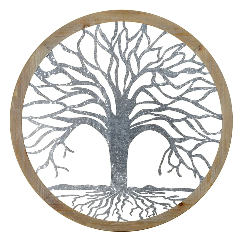 Be the first to review “Metal & Wood Round Silver Tree Wall Art, 32"” Cancel reply