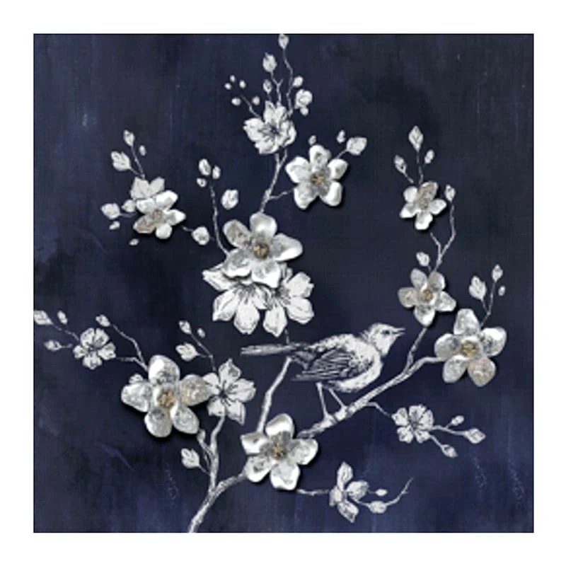 They say beauty is in the eye of the beholder. Art is too. Add a little character to any room in your home with our 32in. Navy Blue Floral Metal canvas wall art. The possibilities are endless with this dark blue, silver and white wall decor. A scenic bird and floral branch motif creates visual interest against a visually interesting backdrop. Hang this wall decor to make a bold statement and to add a touch of personality to your home decor.