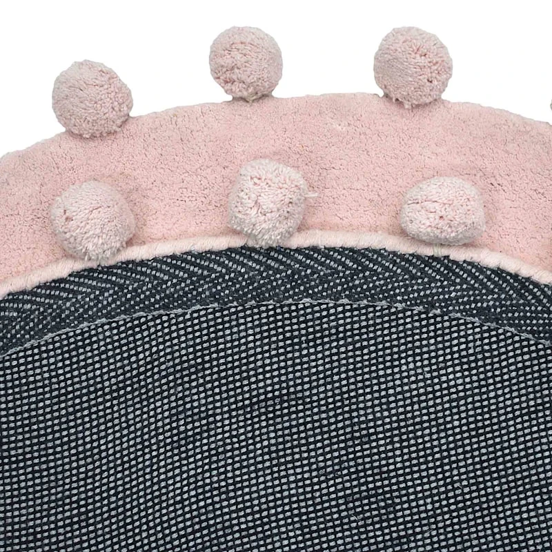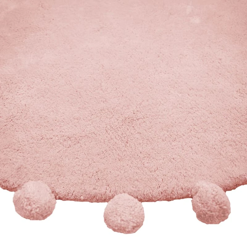 Our cozy pink round pom-pom 3ft. accent rug is ideal for kids’ rooms and modern settings, and it helps with noise levels and keeps bare floors nice and comfy. The plush cotton rug pile offers a super-soft feeling to the touch and will be a treat for your toes. This solid color accent rug will be comfortable in a contemporary loft or just at home in a modern farmhouse.