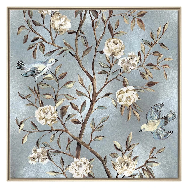They say beauty is in the eye of the beholder. Art is too. Add a little character to any room in your home with our 31in. silver Chinoiserie textured canvas wall art. The possibilities are endless with this grey, white, ivory, brown and black wall decor. A wonderfully detailed floral branch and bird motif creates visual interest against a visually interesting backdrop. Hang this wall decor to make a bold statement and to add a touch of personality to your home decor.