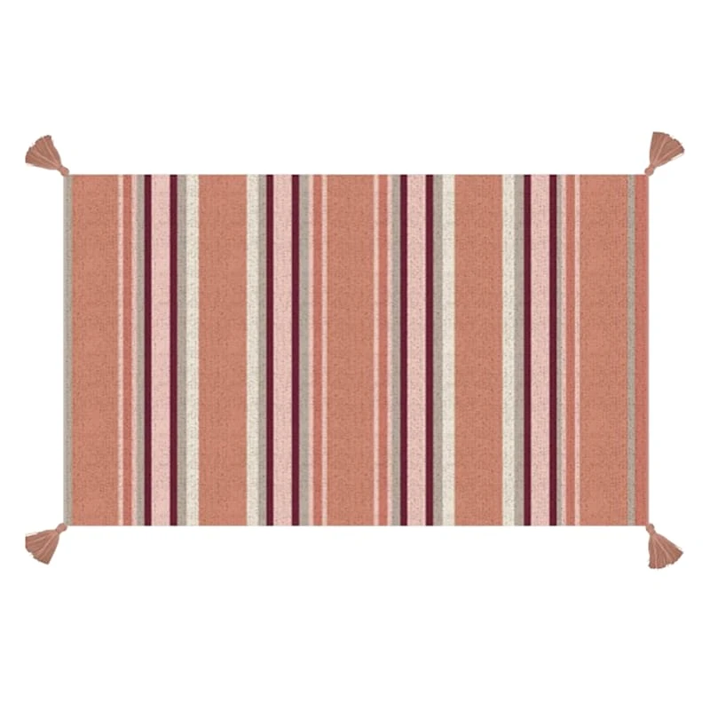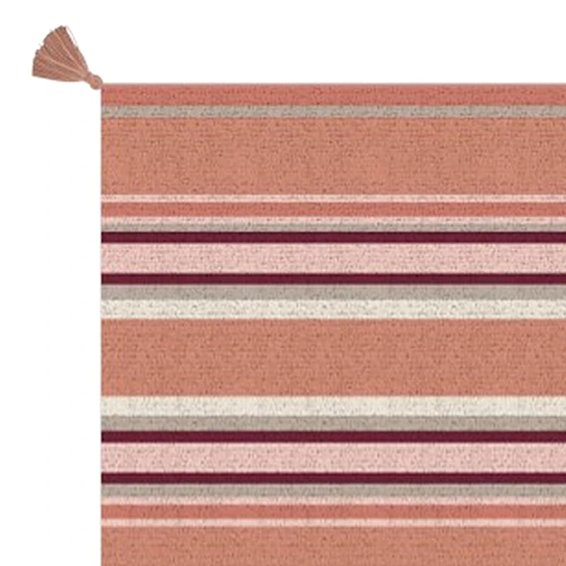 Award-winning London-based fashion designer, illustrator and innovator Tracey Boyd has created a new and exclusive collection for At Home. The soft cotton pile on our pink stripe 27x45in. Pura accent rug will help this rug last a long time. The multicolor stripe print in calming tones of pink, burgundy and ivory will tie together any fashionable space. Add a sense of vintage flair to any living room with this attractive tasseled rug.